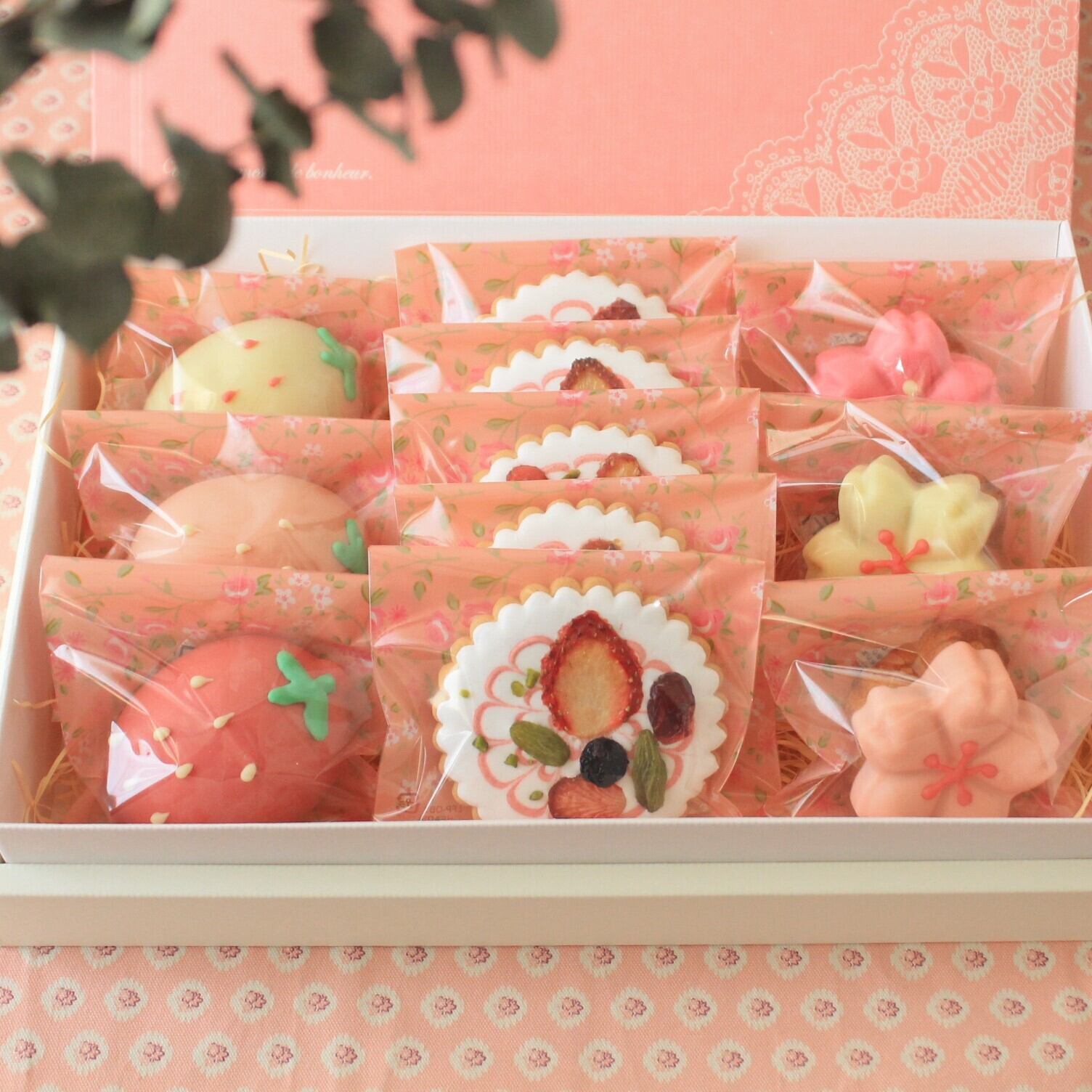 内容量:苺マドレーヌ3個 桜マドレーヌ3個 ミックスベリーアイシングクッキー5枚