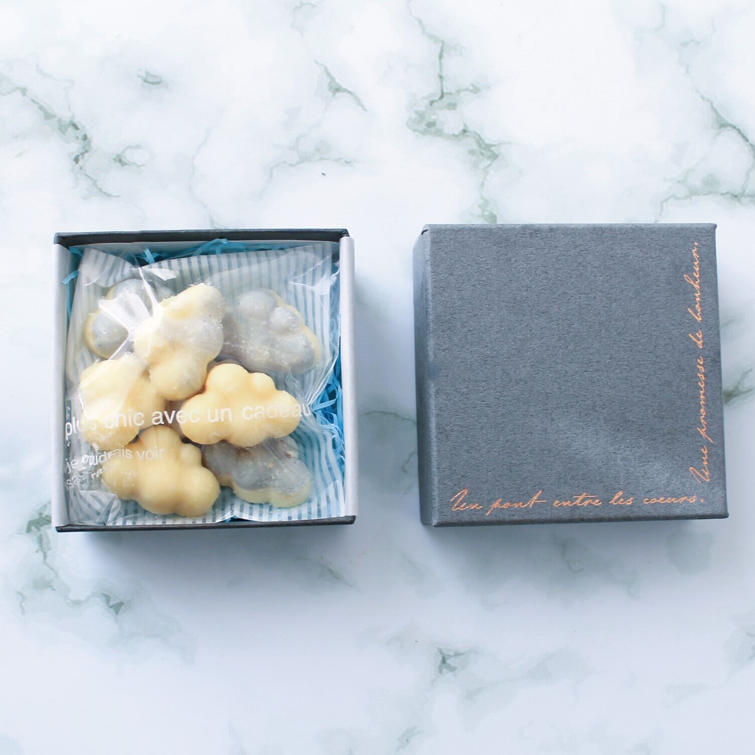 原材料名:ローカカオバター、コールドプレスココナッツオイル、生カシューナッツ、ココナッツミルクパウダー、アガベシロップ、はちみつ、バタフライピーパウダー、ベルガモットオイル